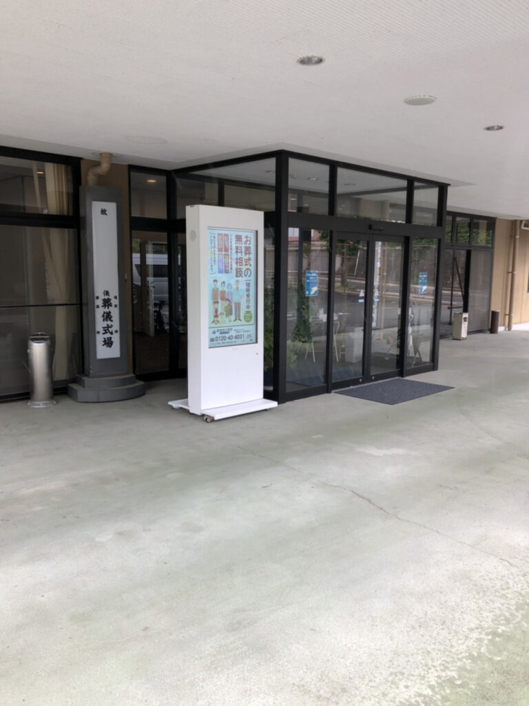 福岡県田川市の有限会社 きど葬祭 やまさ田川斎場様に屋外用55インチ液晶モニタを設置しました。