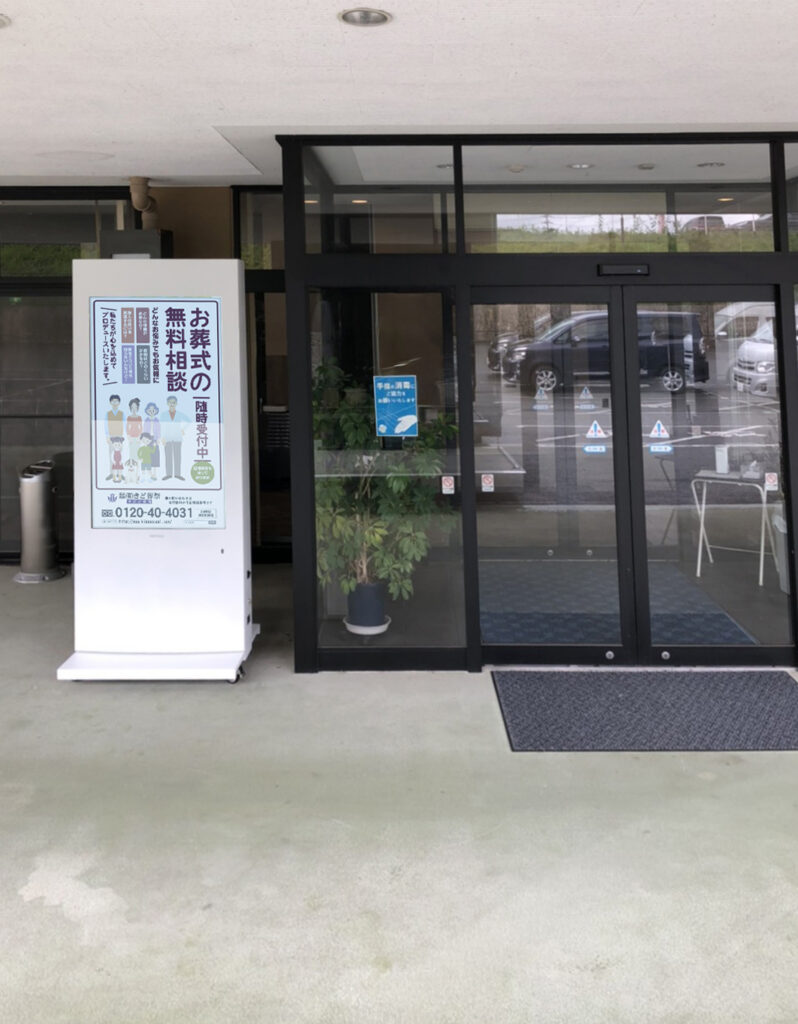 福岡県田川市の有限会社 きど葬祭 やまさ田川斎場様に屋外用55インチ液晶モニタを設置しました。