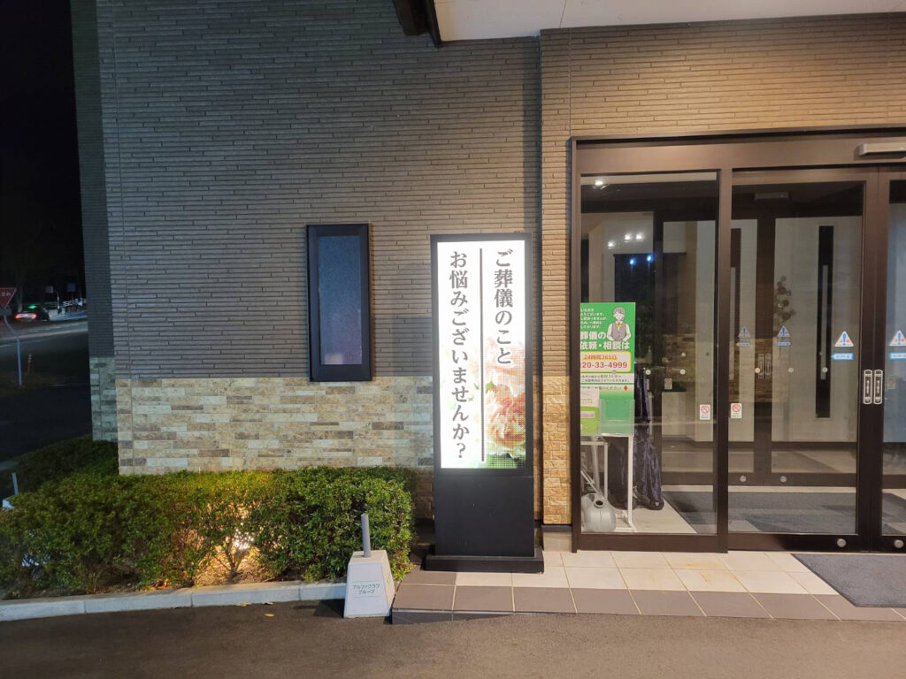 福島県郡山市のアルファクラブ株式会社 さがみ典礼 家族葬ホール横塚様にデジタルのぼり君設置を設置しました。