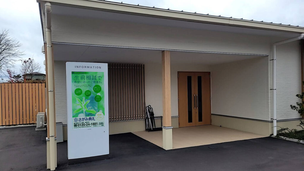 【栃木県日光市】アルファクラブ株式会社 さがみ典礼の家族葬 森友様 屋外用55インチ液晶モニタ設置