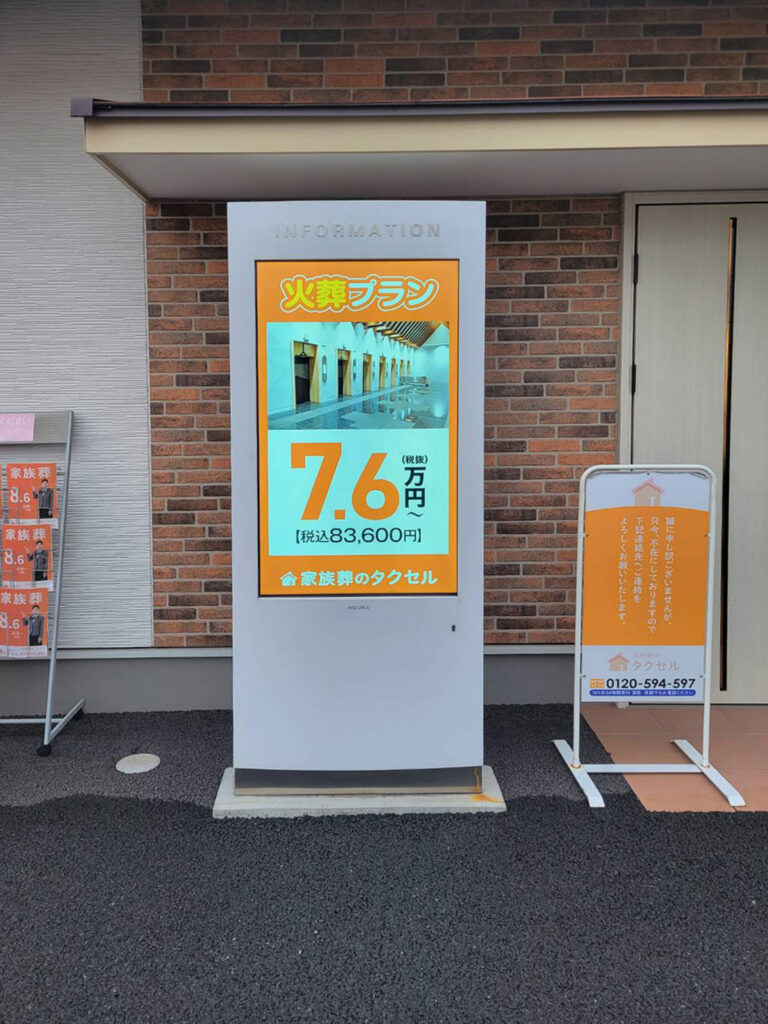 栃木県宇都宮市のアルファクラブ株式会社 家族葬のタクセル松原様に屋外用55インチ液晶モニタを設置しました。