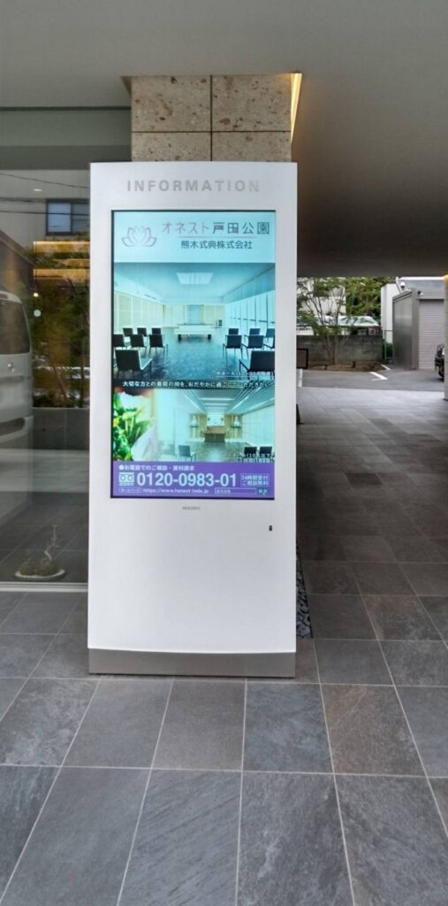 埼玉県戸田市の熊木式典 株式会社 オネスト戸田公園様に屋外用55インチ液晶モニタを設置しました。