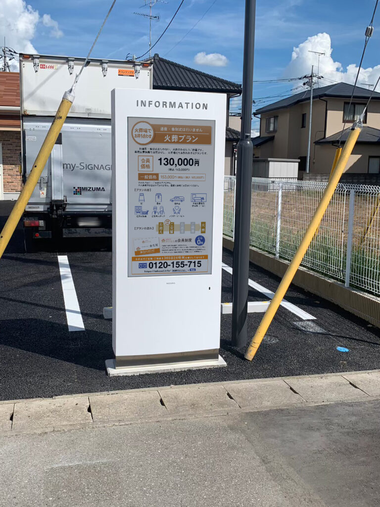 茨城県結城市のアルファクラブ株式会社 家族葬のタクセル結城様に屋外用55インチ液晶モニタを設置しました。