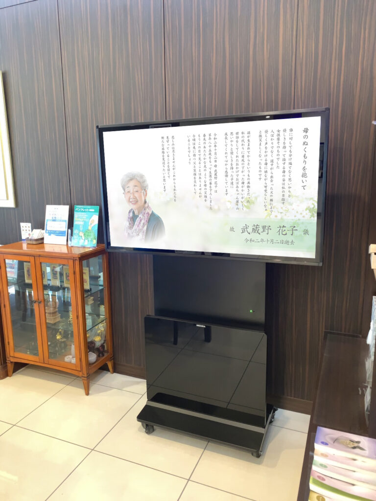 【埼玉県坂戸市】アルファクラブ株式会社 さがみ典礼 やすらぎホール坂戸様 55インチタッチパネル式モニタ設置