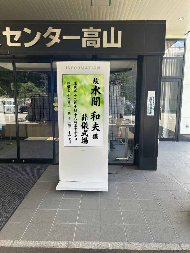 【岐阜県高山市】JAひだ葬祭センター高山様 屋外用55インチ液晶モニタ設置