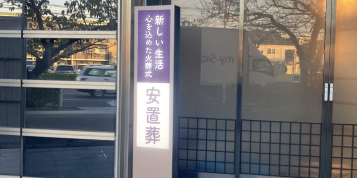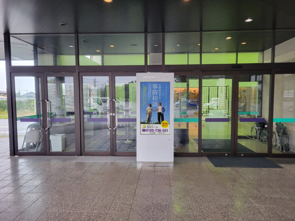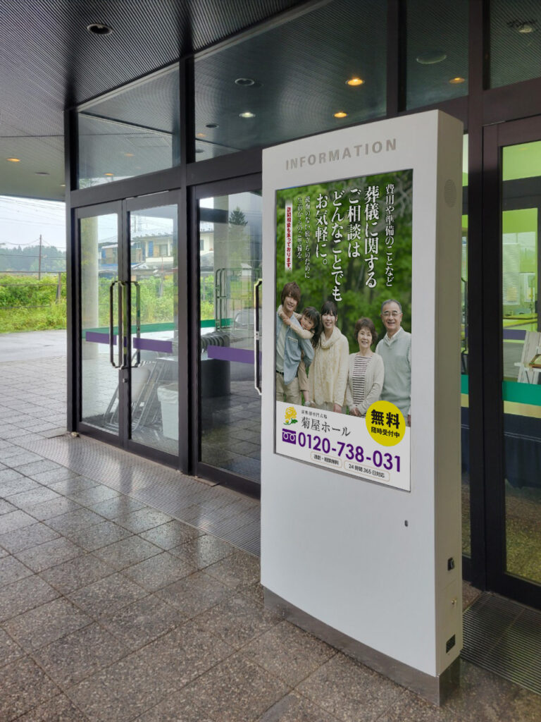 栃木県日光市の有限会社 菊屋造花店 菊屋ホール様に屋外用55インチ液晶モニタを設置しました。