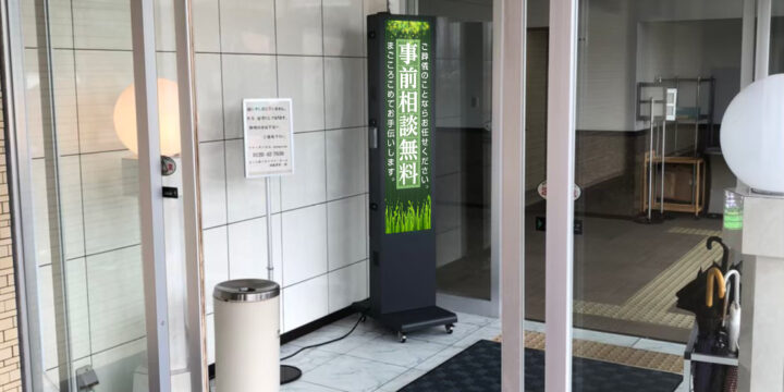 | 設置場所/設置方法 | 会館入り口/キャスター付きスタンド |