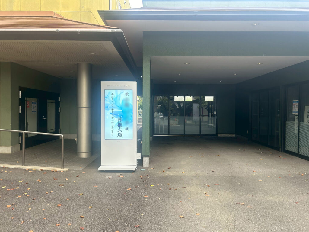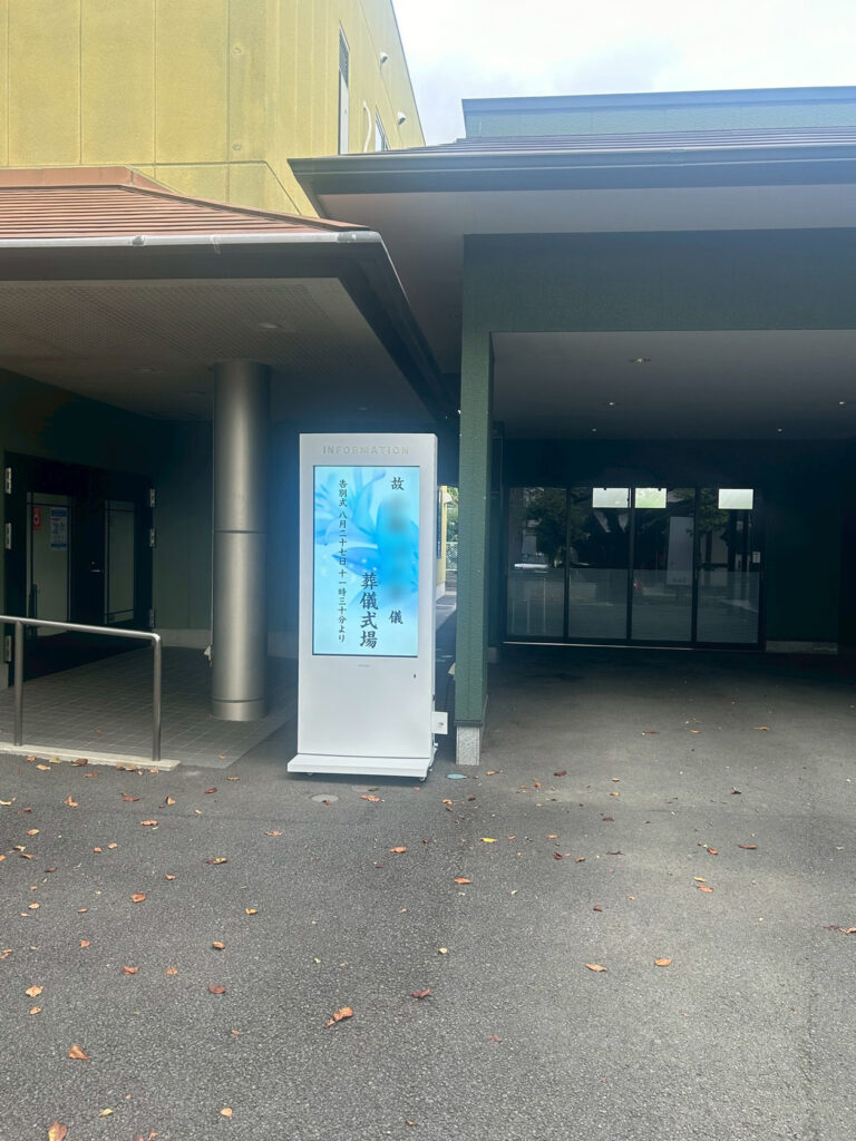 【神奈川県足柄上郡】有限会社 市兵衛葬具店 メモリアルホール松田様 屋外用55インチ液晶モニタ設置