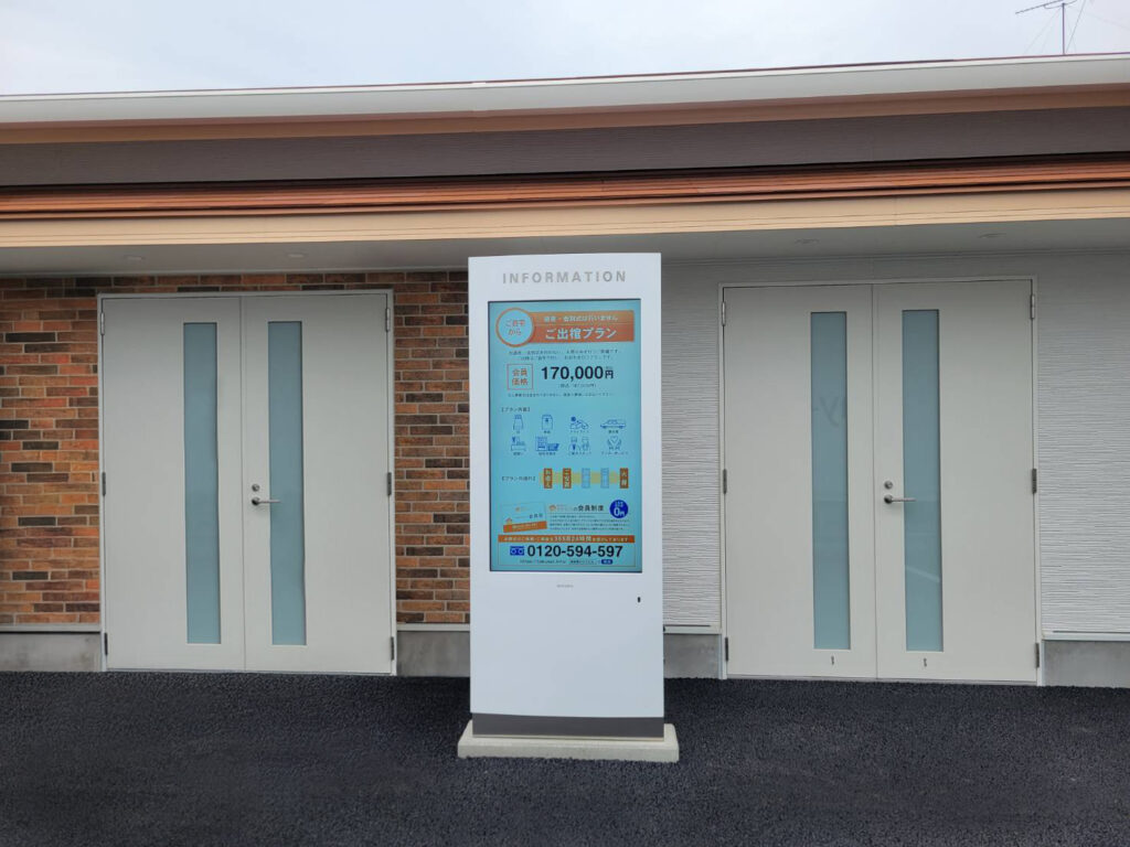 【群馬県伊勢崎市】アルファクラブ株式会社 家族葬のタクセル伊勢崎今泉町様 屋外用55インチ液晶モニタ設置