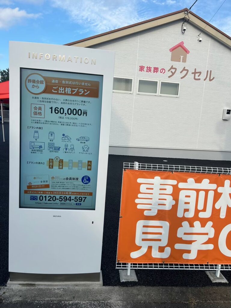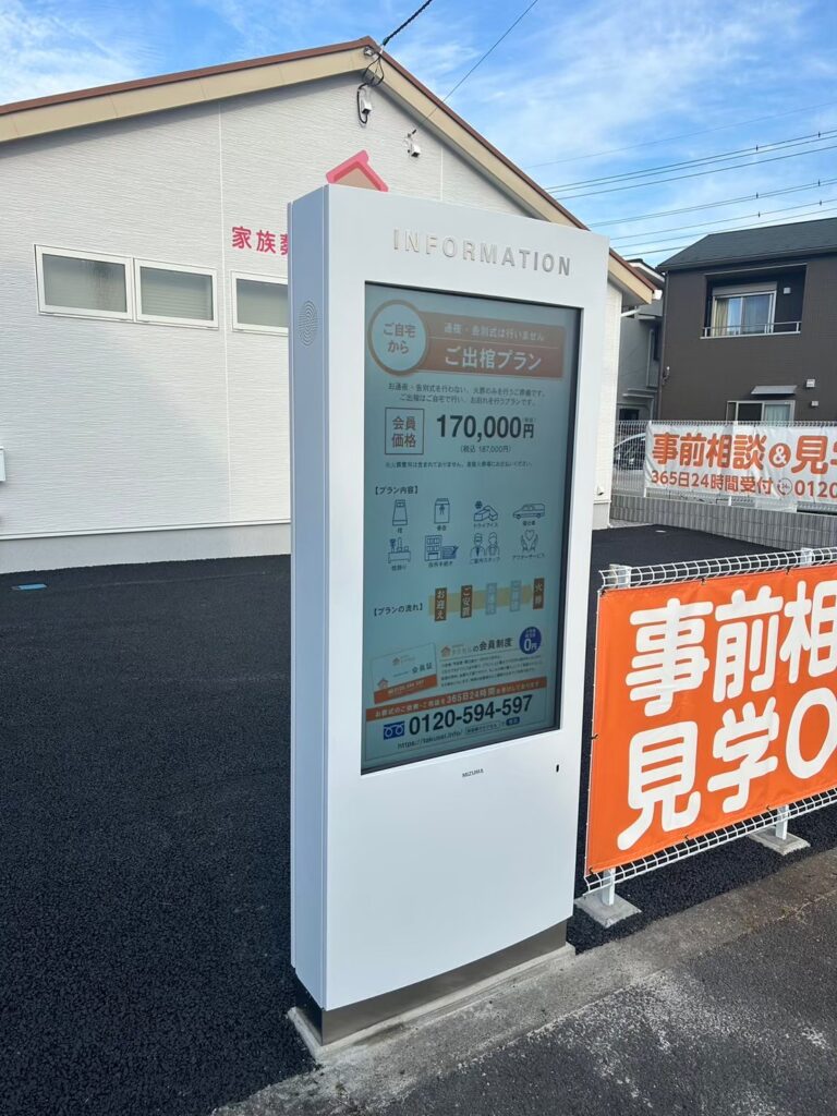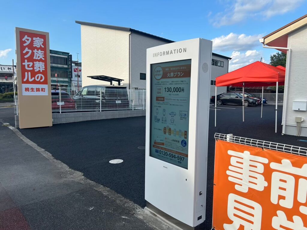 【群馬県桐生市】アルファクラブ株式会社 家族葬のタクセル桐生錦町様 屋外用55インチ液晶モニタ設置