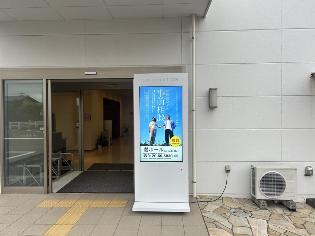 静岡県藤枝市の有限会社小林 奏ホール様に屋外用55インチ液晶モニタを設置しました。