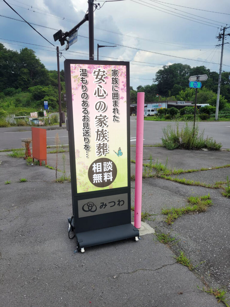 【長野県小諸市】(株)みつわ 家族葬邸宅みつわ 浅科中佐都店様 デジタルのぼり君設置
