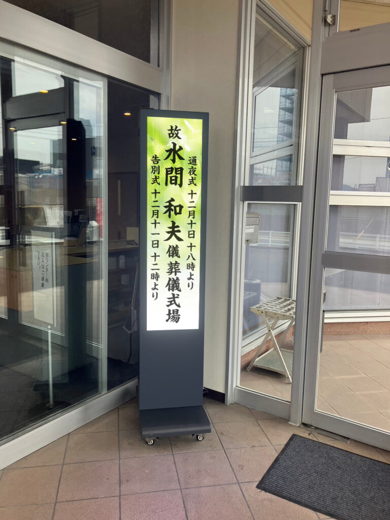 福岡県鞍手郡の有限会社 花六 セレモニーホール鞍心館様にデジタルのぼり君を設置しました。