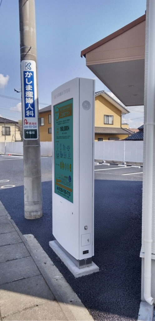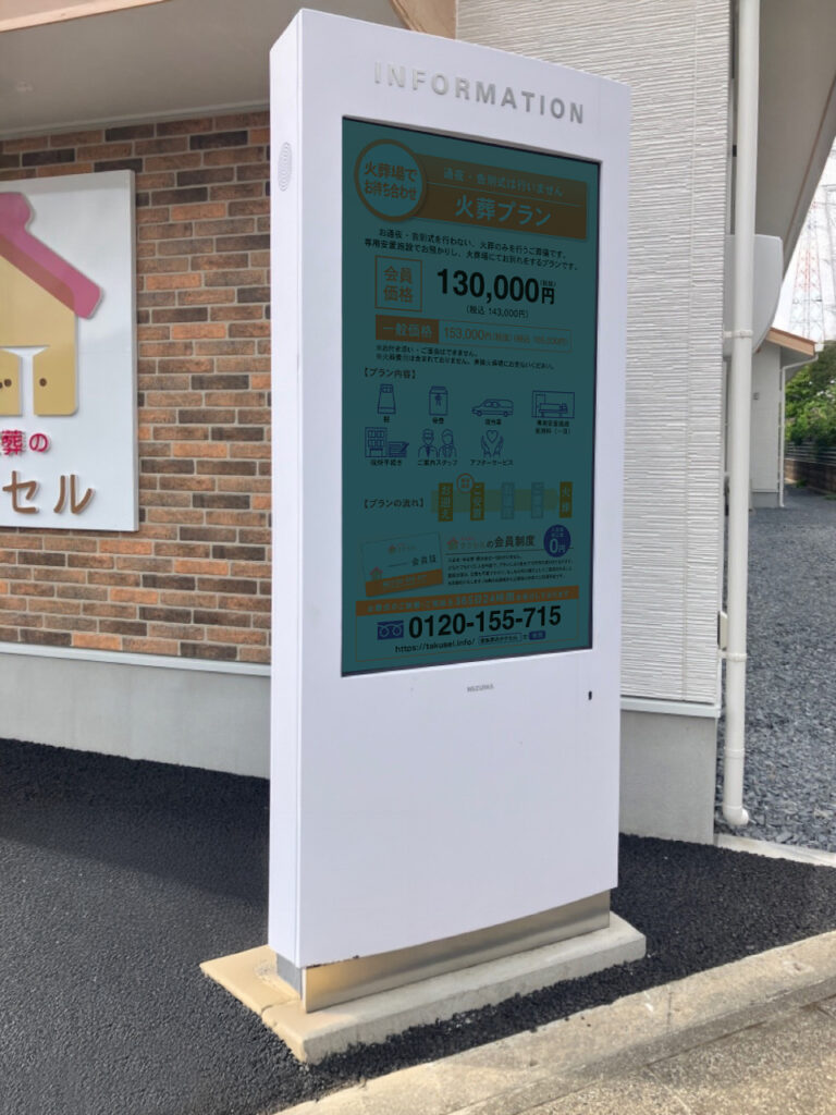 栃木県足利市のアルファクラブ株式会社 家族葬のタクセル今福町様に屋外用55インチ液晶モニタを設置しました。