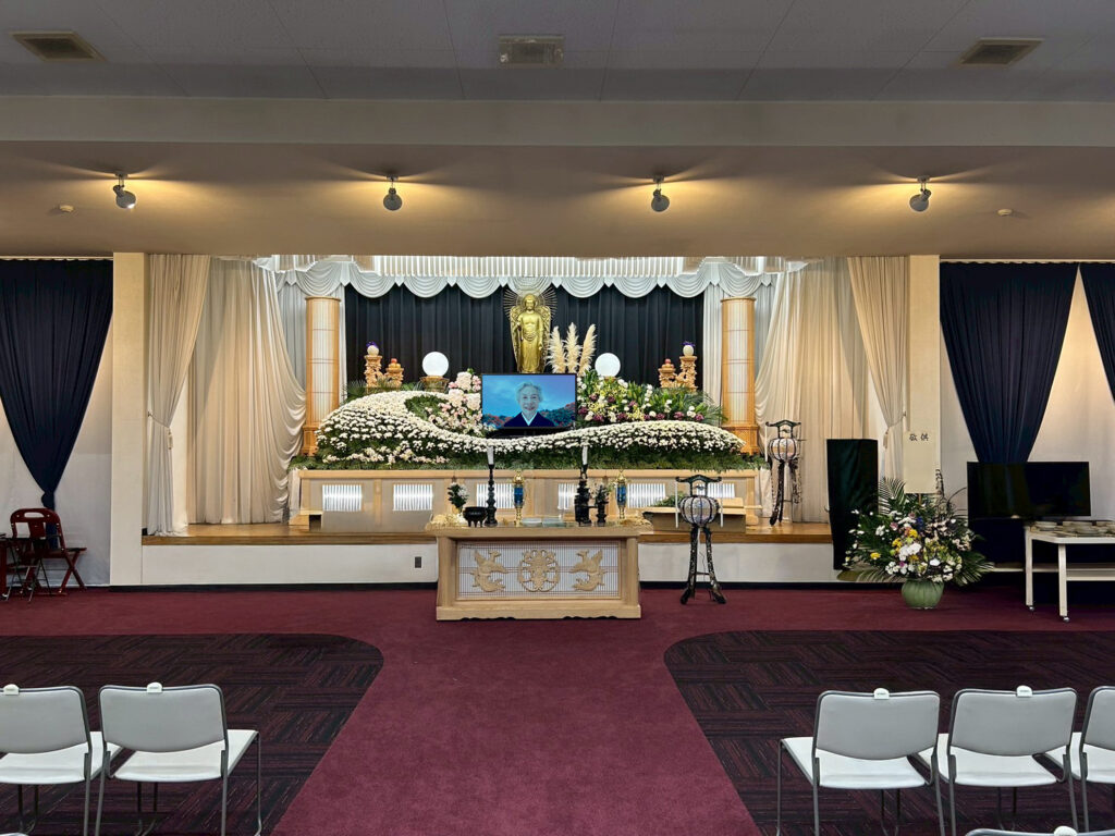 福岡県田川郡の田川地区葬祭協同組合様に祭壇モニタ55インチを設置しました。