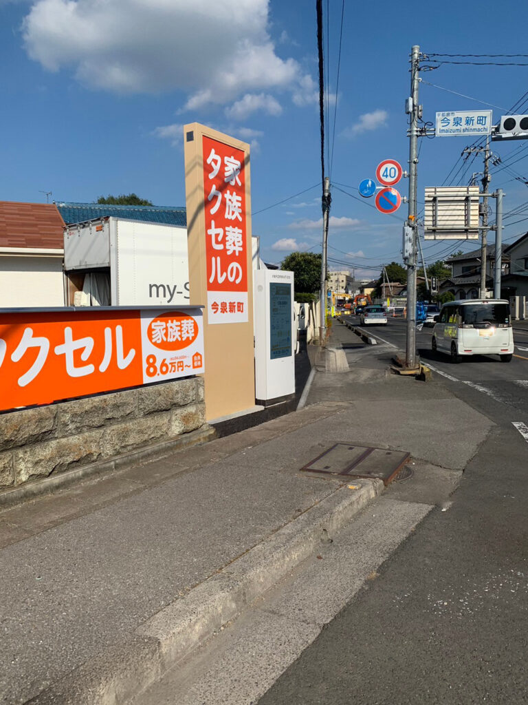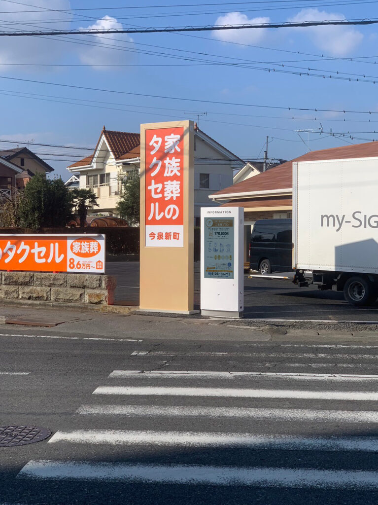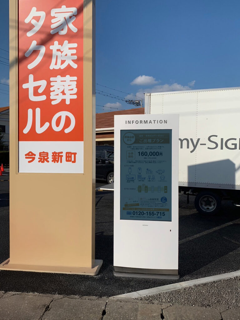 栃木県宇都宮市のアルファクラブ株式会社 家族葬のタクセル今泉新町様に屋外用55インチ液晶モニタを設置しました。