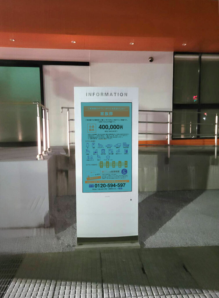 【群馬県伊勢崎市】アルファクラブ株式会社 葬儀のタクセル伊勢崎茂呂町様 屋外用55インチ液晶モニタ設置